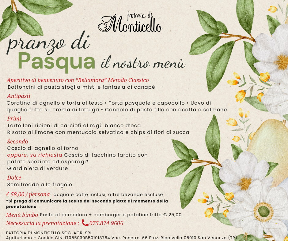 Pranzo di Pasqua 2026 a Fattoria di Monticello